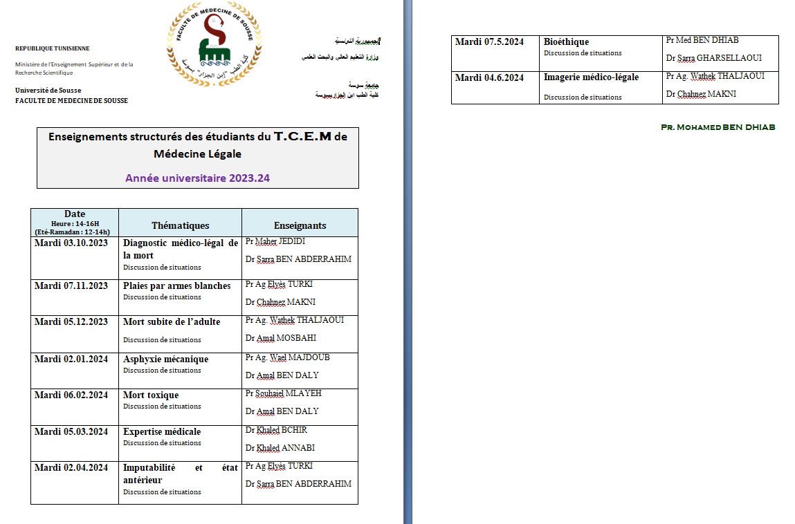 Programme des cours TCEM 2024.2025